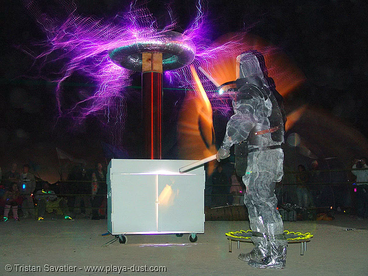 Tesla Coil Project / tesla coil, project CEREBRO, burning man 2005 : Tesla coils are very fascinating, because you can easily create lightnings with it.